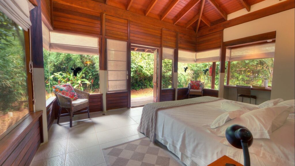 • Acomodações confortáveis (ex.: bangalôs com varanda e rede, ar-condicionado e comodidades) para descansar bem entre as atividades.